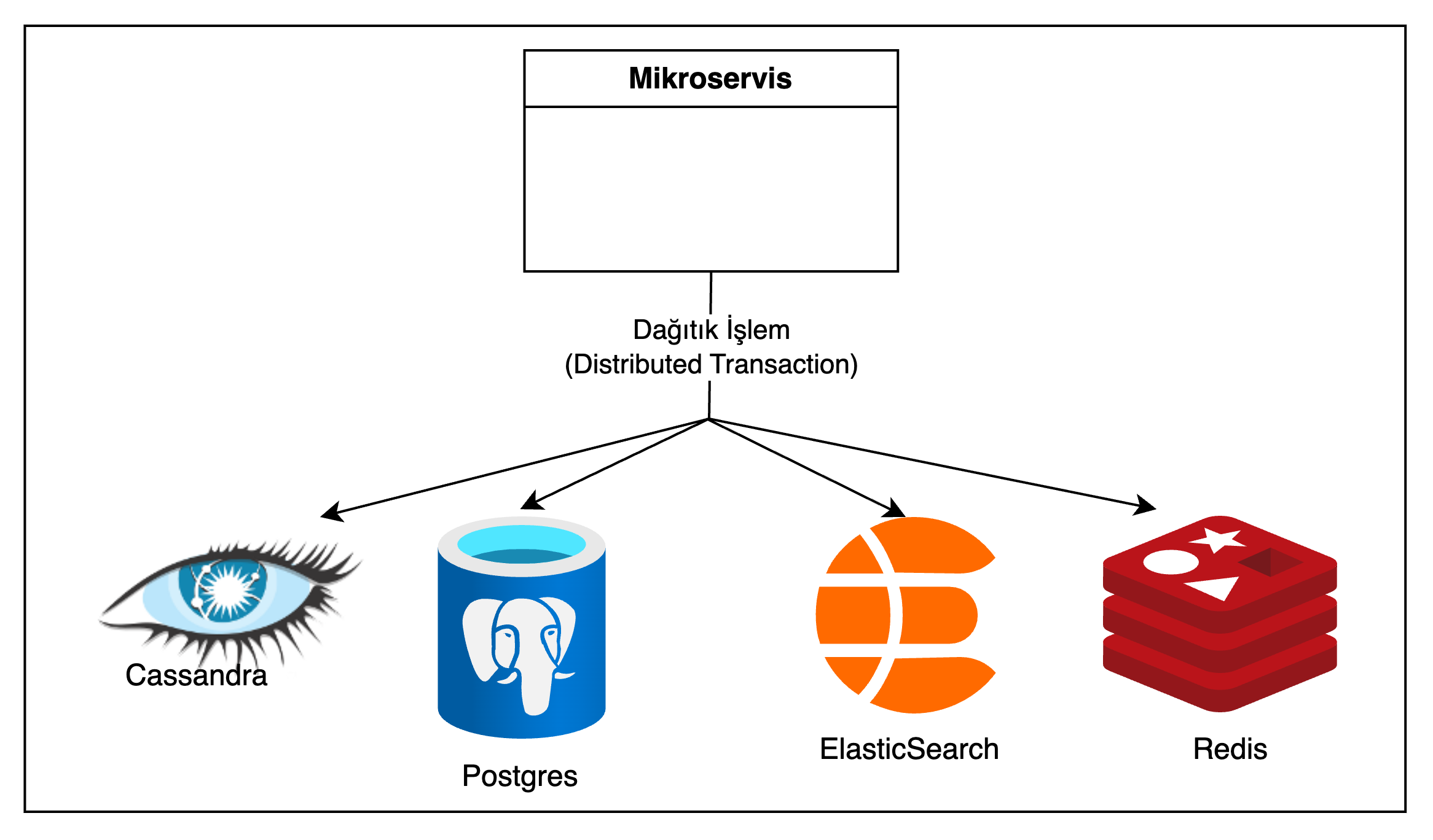 Bir diğer yaklaşım; bir mikroservisin birden fazla veri tabanına tek bir işlem(transaction) ile yazması olabilir. Bunun icin XA Transaction (Birden fazla veri tabanına yazma işlemini içeren transaction yönetimi protokolu) kullanılabilir.