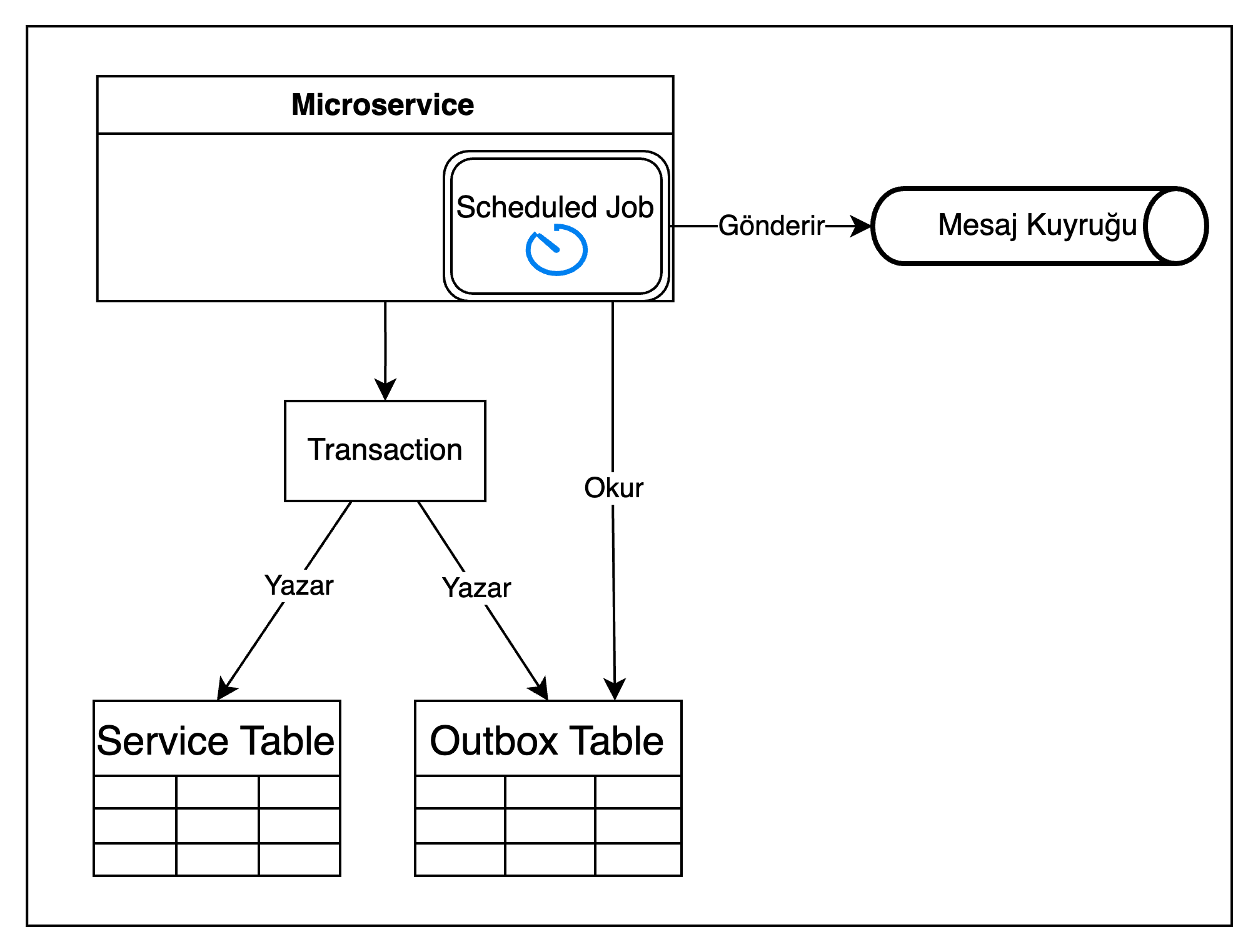 Geleneksel olarak Outbox Pattern için akış şeması ekteki gibidir: