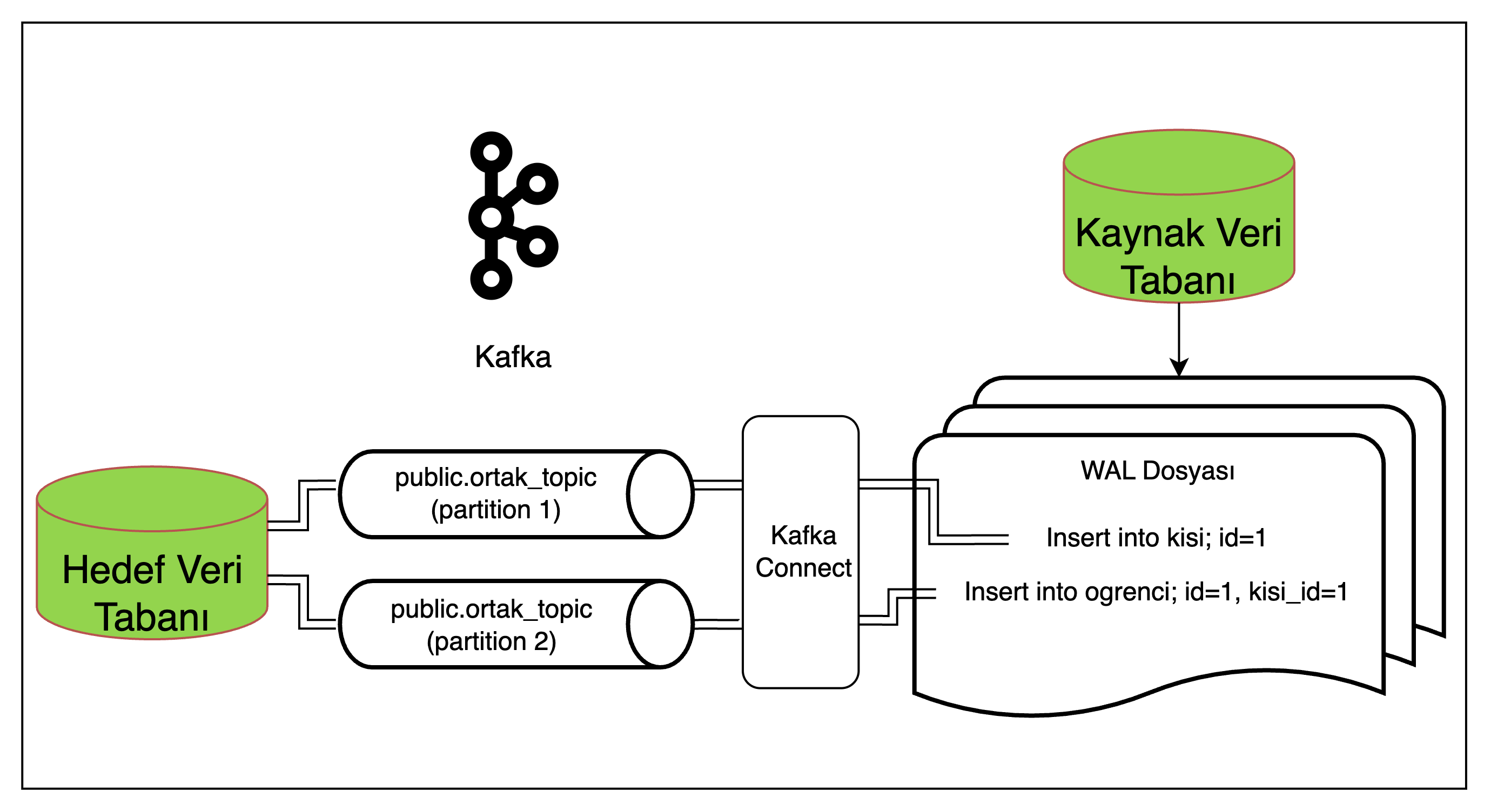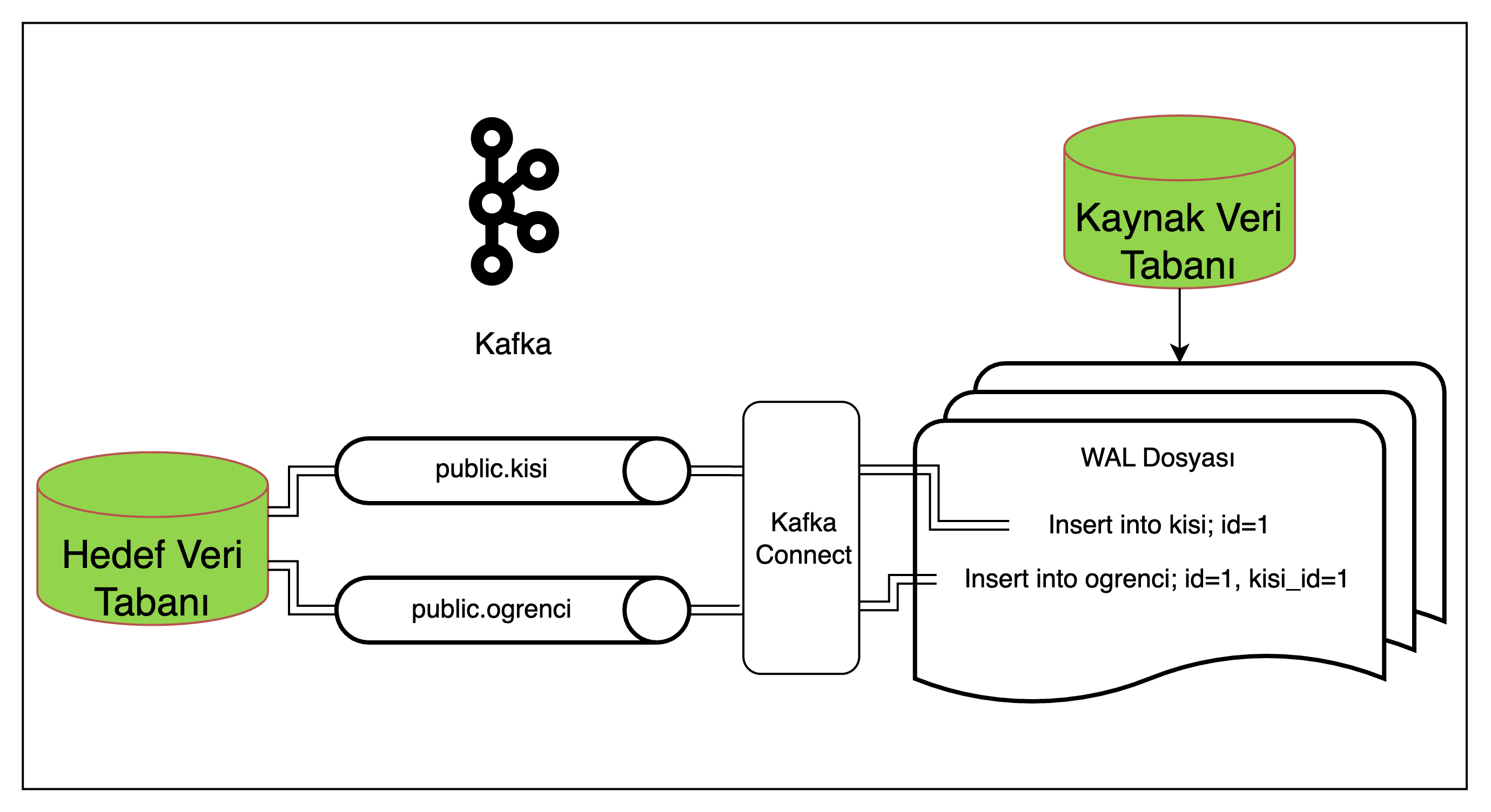 Bu yaklaşımda veriyi kaynak veri tabanından gerçek zamanlı olarak Kafka’ya aktarmak için izlenen metot Transaction Log Tailing (İşlem Günlüğü Takibi) olarak adlandırılır.