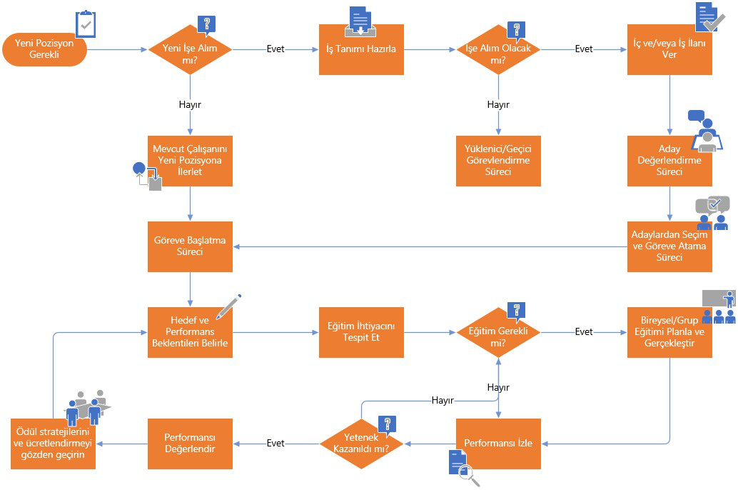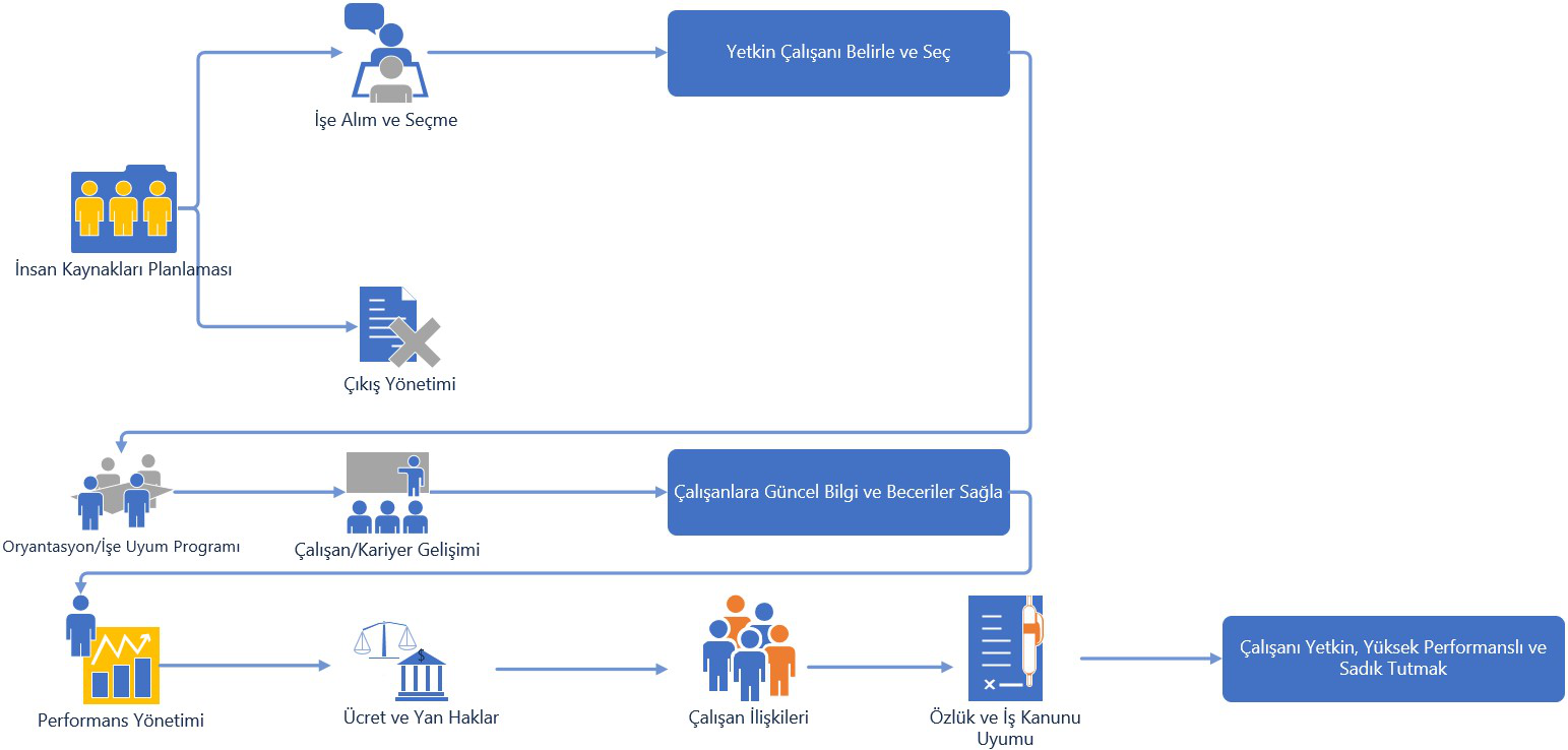 İnsan Kaynakları Yönetimi’nin süreç akışı genel görünümü ile aşağıda listelenmiştir.